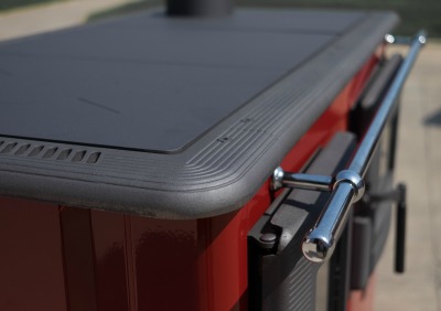 Ram vrata ložišta i ram vrata pećnice su izrađeni od sivog liva – sa vatrostalnim staklom u sredini. Okvir grejne ploče, takođe, je izrađen od sivog liva. Pećnica je izrađena od nerđajućeg čelika odgovarajućeg kvaliteta.